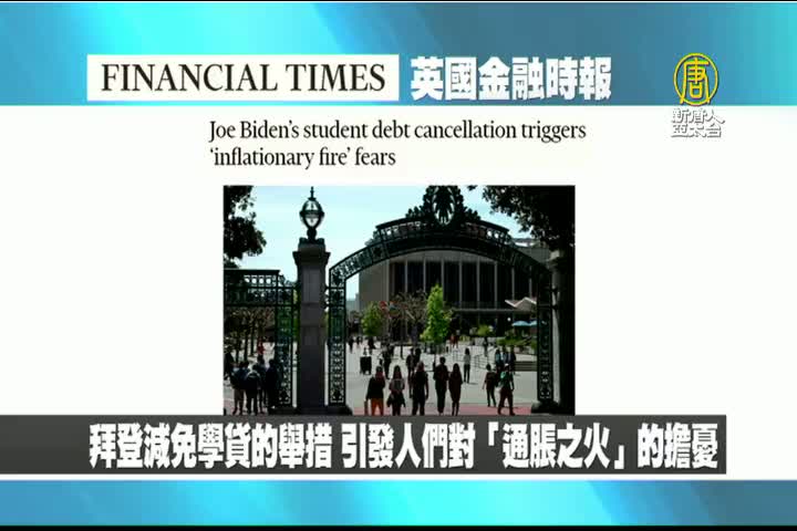 【新唐人亞太台 2022 年 08 月 26 日訊】接著是英國金融時報的報導:拜登減免學貸的舉措,引發人們對「通脹之火」的擔憂。