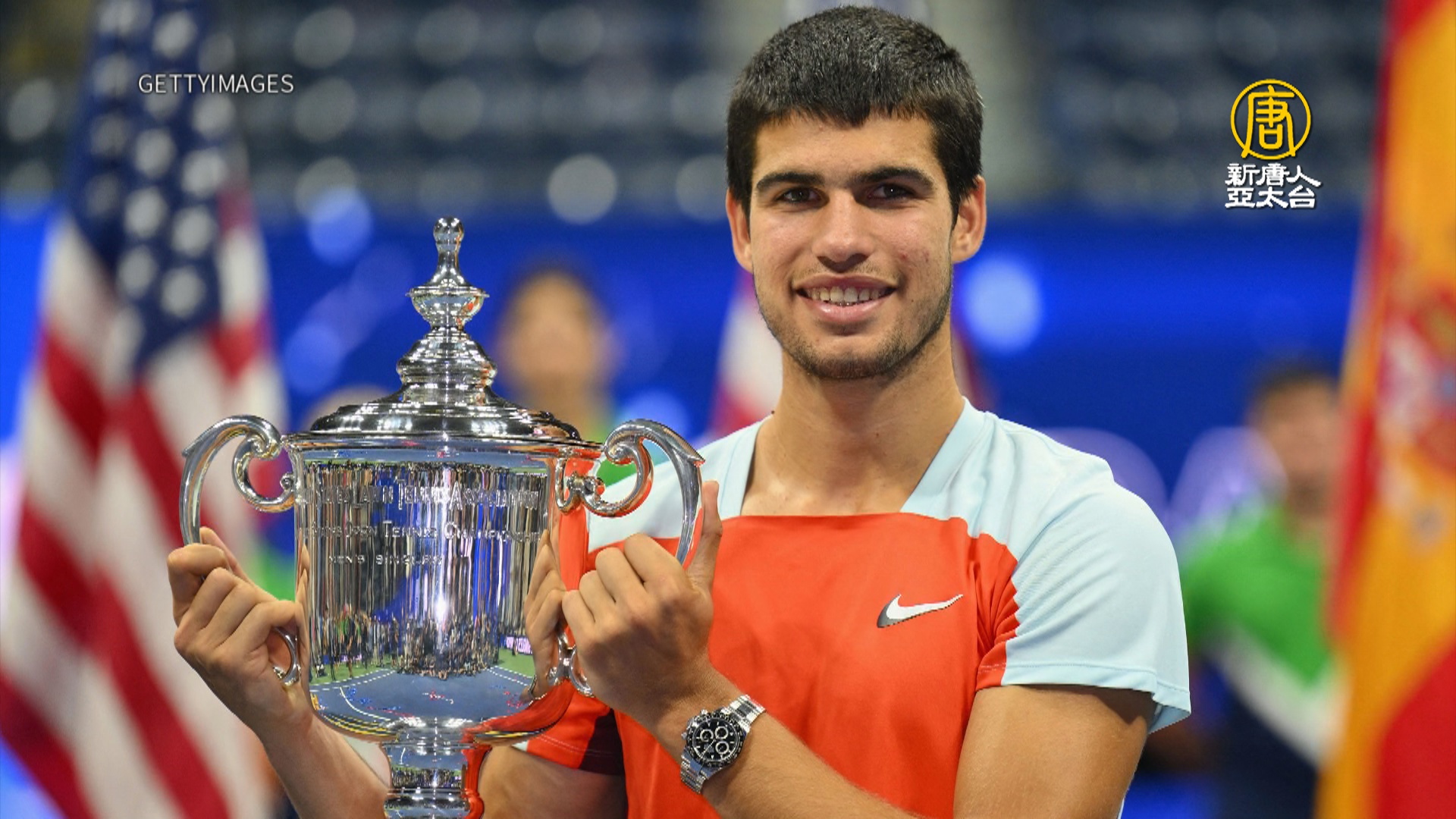 【新唐人亞太台 2022 年 09 月 12 日訊】年僅19歲的西班牙「小蠻牛」阿爾卡拉斯,12日在美國網球公開賽男單決賽,經歷4盤拉鋸苦戰,擊敗挪威好手魯德,拿下美網男單冠軍,阿爾卡拉斯不僅贏得生涯大滿貫賽首冠,更成為男網史上最年輕的世界球王。