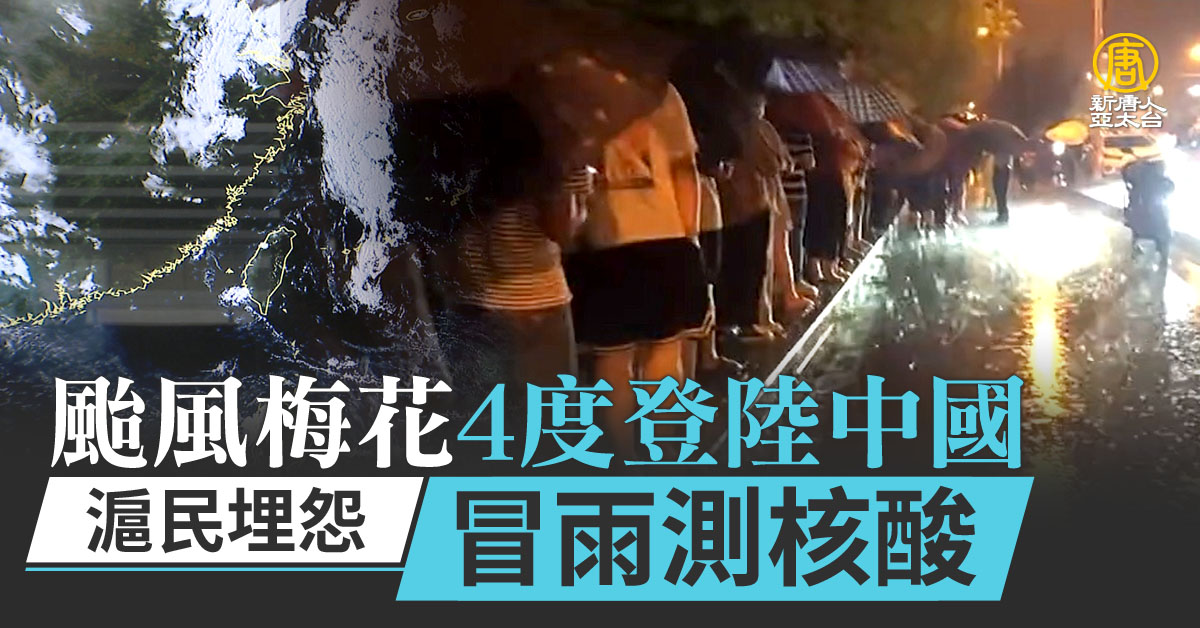 【新唐人亞太台 2022 年 09 月 16 日訊】另一個颱風梅花,先前從台灣擦身而過,今天中午在中國遼寧省大連市沿海,第4次登陸中國大陸,成為1949年以來登陸中國最北方的秋天颱風,也是21世紀以來第一個登陸東北地區的颱風,梅花颱風已存活8天,生命力頑強,也創下多項紀錄。在不穩定的天氣下,中共清零政策持續,一些民眾不得不在晚上冒雨出門排隊做核酸檢測,引發民怨,因為上海民眾出行,需要72小時或48小時內核酸檢測陰性證明,有些學校第二天返校、要求學生提供24小時內陰性證明。