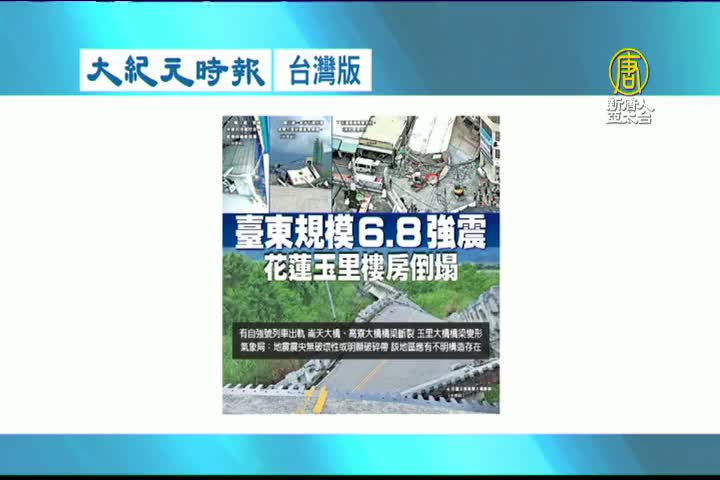 【新唐人亞太台 2022 年 09 月 19 日訊】接著看到大紀元時報台灣版報導:臺東規模6.8強震,花蓮玉里樓屋倒塌。