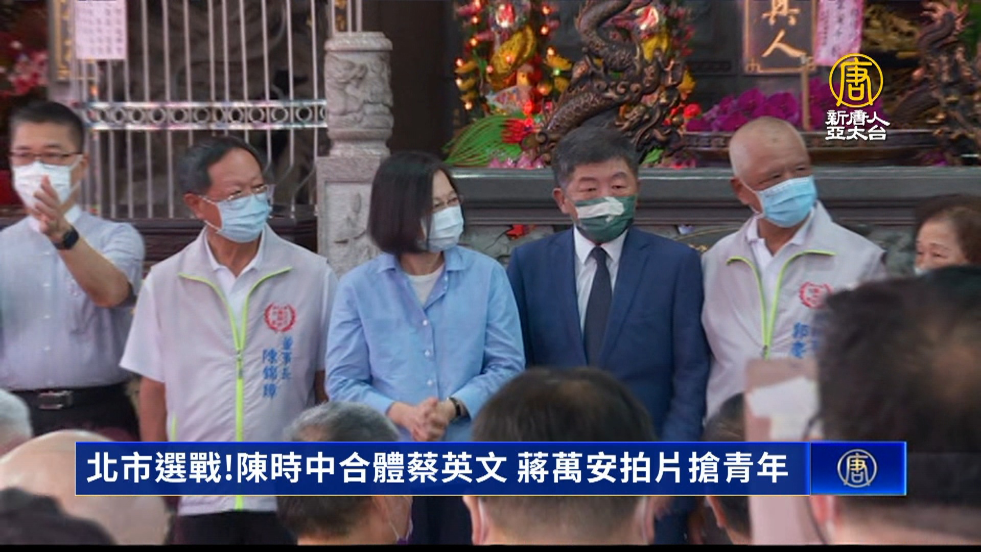 【新唐人亞太台 2022 年 09 月 26 日訊】鏡頭轉回台灣,選戰倒數2個月,台北市長的最新民調出爐,國民黨台北市長參選人蔣萬安居冠,超越無黨籍黃珊珊及民進黨的陳時中,而陳時中今天合體總統蔡英文到宮廟參拜,蔣萬安則是和網紅拍片,搶攻青年牌。