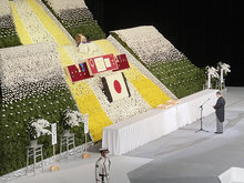 【新唐人亞太台 2022 年 09 月 27 日訊】日本已故前首相安倍晉三「國葬」今天下午舉行,約4300人出席的會場內播放回顧安倍從政以來關鍵談話與重大政績,場外設置的獻花台也有超過萬人到場獻花惜別,場面哀戚。