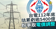 台電112年底估累虧逾5400億 盼爭取電價調整