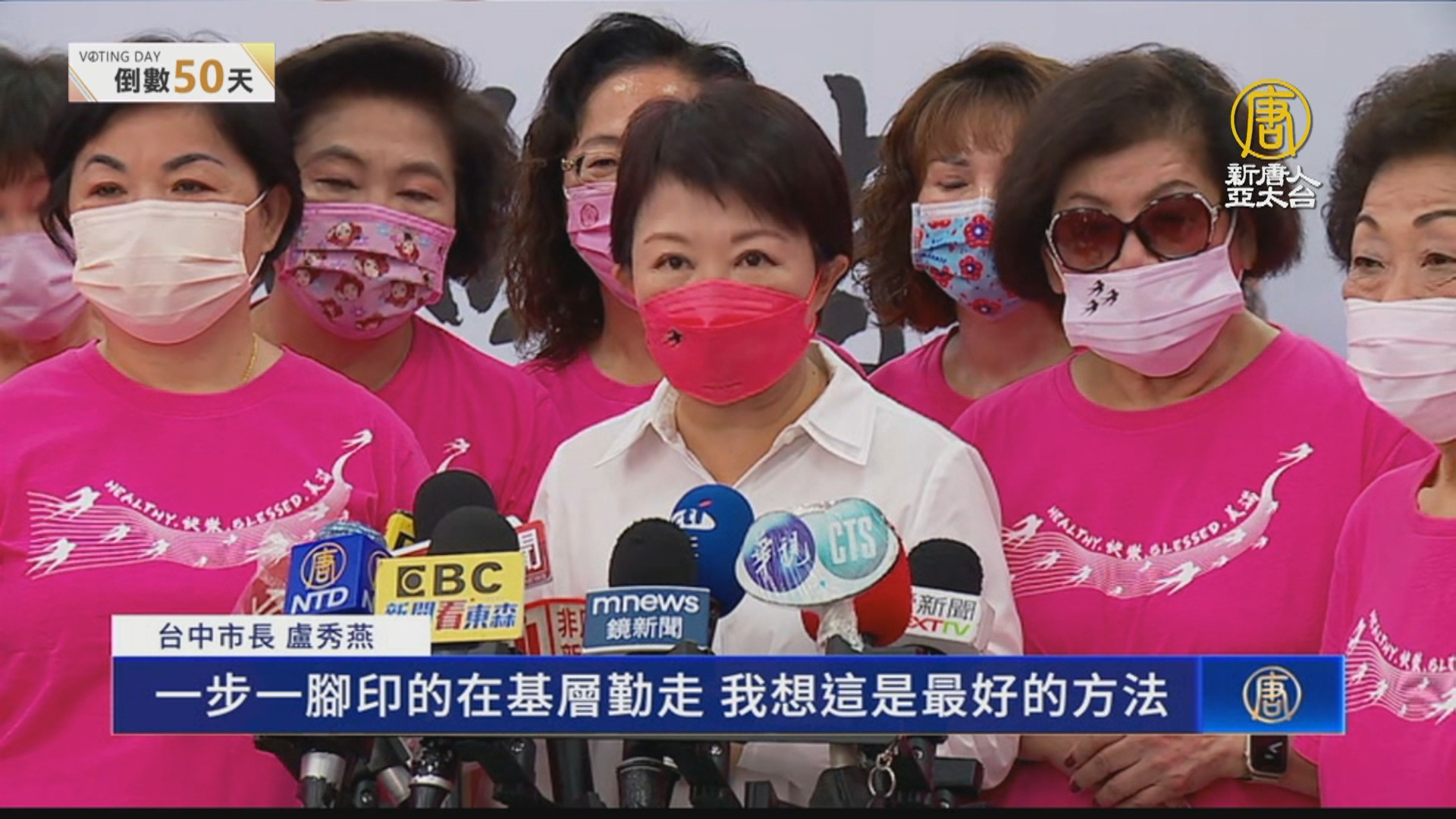 台中市長 盧秀燕:「這個民調很多,以台中市來講,這一年來有差不多100份的民調,民調參考就好,不管或好或者是不好都參考就好,最重要是要爭取人民的支持,所以一直到開票的那一天才知道有沒有,不過這段時間我們就採取,誠懇的向市民朋友請託,一步一腳印展現我們的政績,一步一腳印的在基層勤走我想這是最好的方法。」
