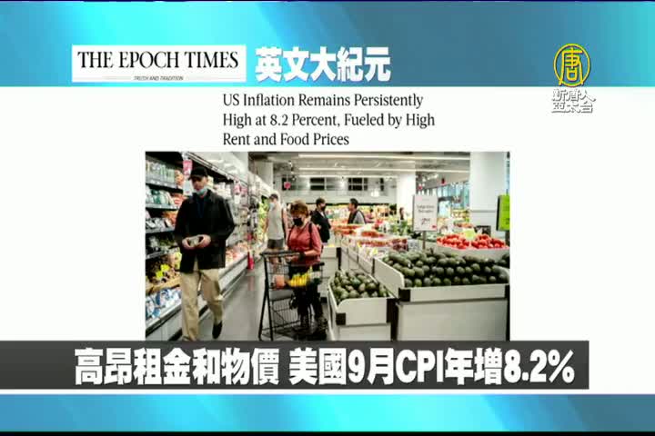 【新唐人亞太台 2022 年 10 月 14 日訊】首先來看到美國大紀元英文版報導:高昂租金和物價,美國9月CPI持續走高,年增8.2%。