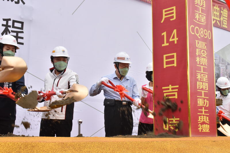 柯文哲、侯友宜與民進黨籍立法委員蘇巧慧等人今天到新北市樹林國民運動中心旁,出席捷運新北樹林線樹林段工程開工動土典禮。
