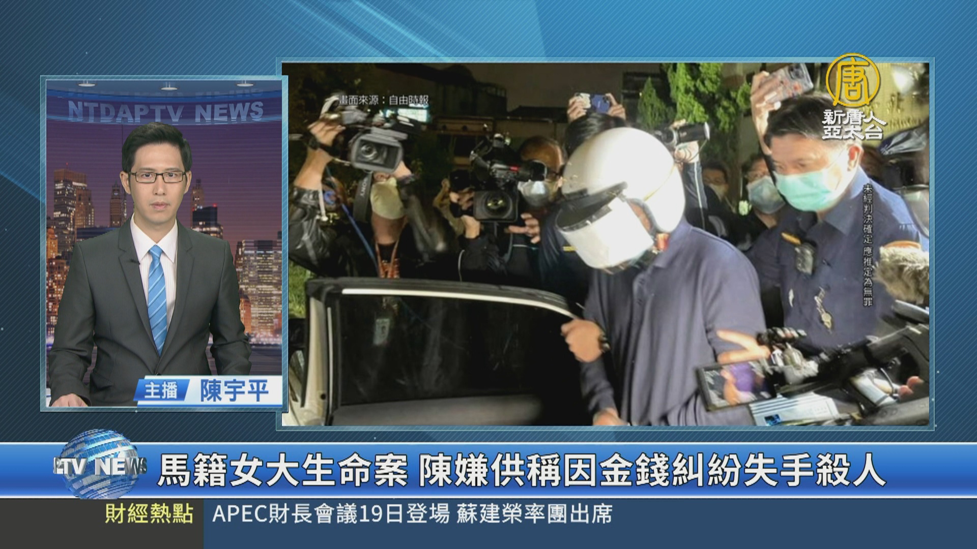 【新唐人亞太台 2022 年 10 月 17 日訊】歡迎回來。來看到,上周(13日)馬來西亞籍24歲蔡姓女大學生的命案,引發各界關注,涉案的30歲陳姓男子,疑似因金錢糾紛和蔡姓女大學生發生爭執,進而失手殺人。警方全案詢後,將於週一晚間將陳姓男子依涉嫌殺人罪,移送士林地檢署偵辦,並追查詳細犯案動機。