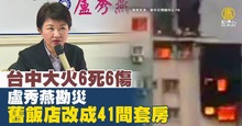 台中大火6死6傷 盧秀燕勘災 舊飯店改成41間套房