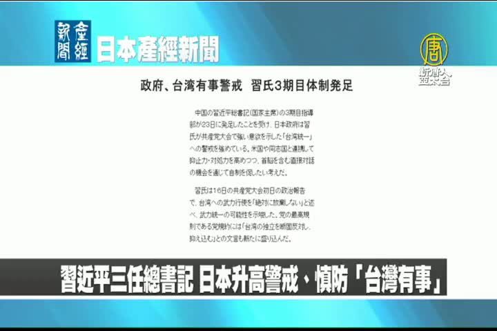 【新唐人亞太台 2022 年 10 月 24 日訊】來看到日本產經新聞報導:習近平連任總書記,日本政府升高警戒,慎防「台灣有事」。