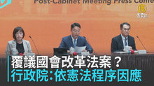 2024-05-23 19:16:09行政院長卓榮泰23日首次召開行政院會,而藍白兩黨,近日三讀闖關國會改革相關法案,引發擴權爭議。對此行政院回應強調,政院遵從憲法、依法行政,希望立法院關注民意。