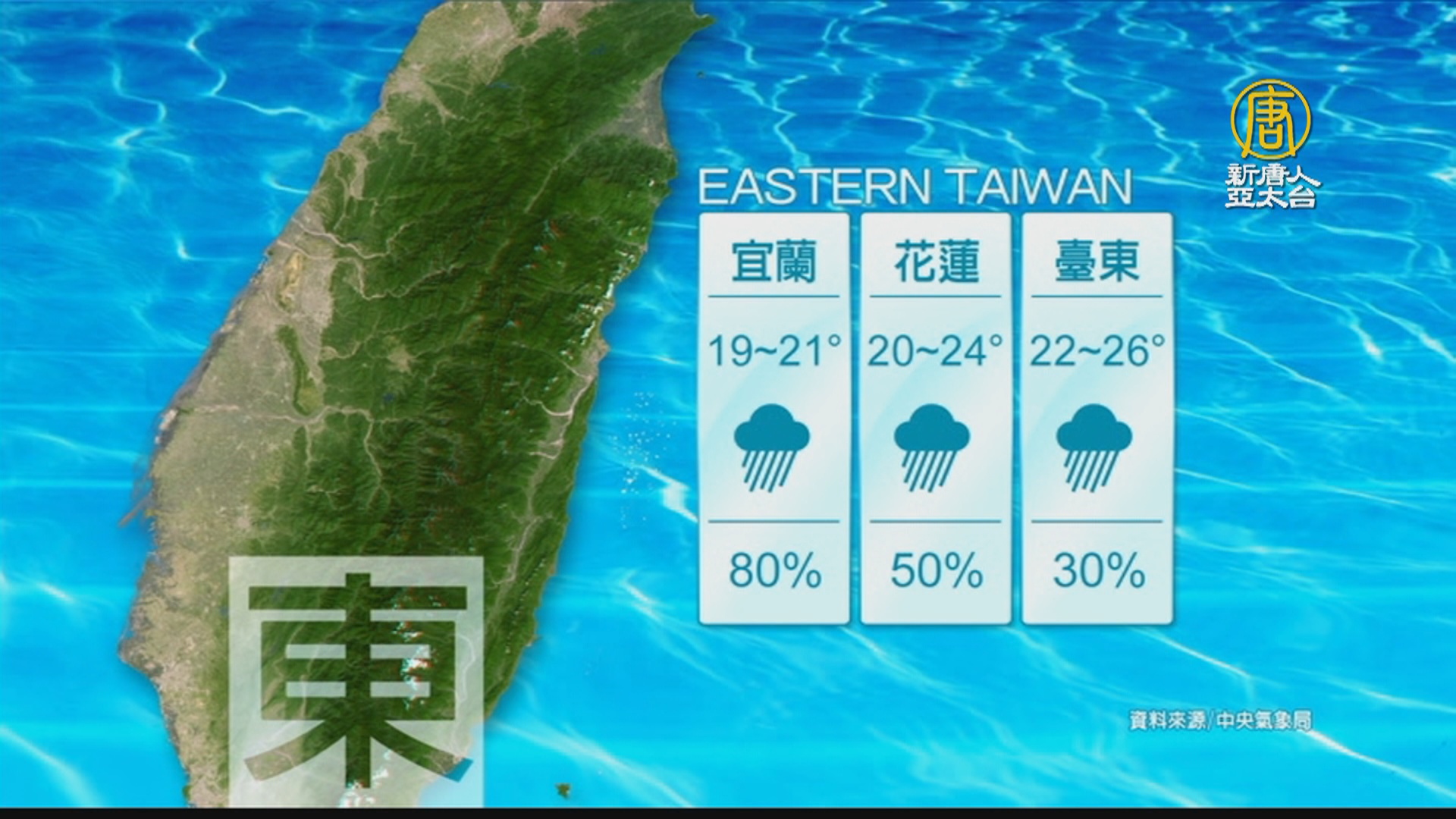 2022-11-04 09:05:35歡迎您收看11月4日的早安新唐人,我是趙庭譽,先來帶您關心天氣。今起東北季風增強,北台灣白天高溫下降到22至24度,中南部及花東為26至29度,全台各地都開始有間歇降雨,不過,星期天開始,天氣將是多雲轉晴,氣溫有機會回升。帶您一起來看到國際媒體重要訊息。