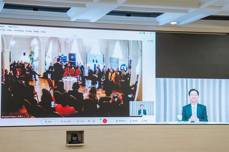 外交部長吳釗燮以視訊方式出席「2022歐洲價值高峰會」。(圖/外交部提供)