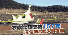 2019-03-11 12:33:21國際再傳嚴重空難,非洲最大的航空公司,衣索比亞航空公司證實,一架波音737客機星期天墜毀,機上157人全部遇難,其中包含19位聯合國人員。另外,還有八名持中國大陸護照的乘客。目前沒有台籍旅客。