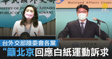 台外交部、陸委會與各黨 籲北京回應白紙運動訴求