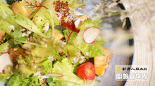 7. 淋上檸檬優格芥子醬,切片櫻桃蘿蔔、豆芽即完成此道菜色。