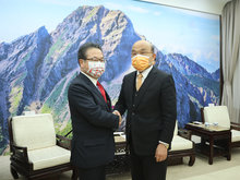 2022-07-07 11:32:35日本台灣交流協會台北事務所首席副代表星野光明,6日在經濟部獲頒經濟專業獎章。經濟部長王美花感謝他,為台日經貿合作做的努力。星野光明也誓言,回到日本後也會積極完成自己任內沒有完成的工作,也就是讓台灣加入CPTPP。