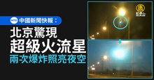 中國新聞快報:北京驚現超級火流星 兩次爆炸照亮夜空