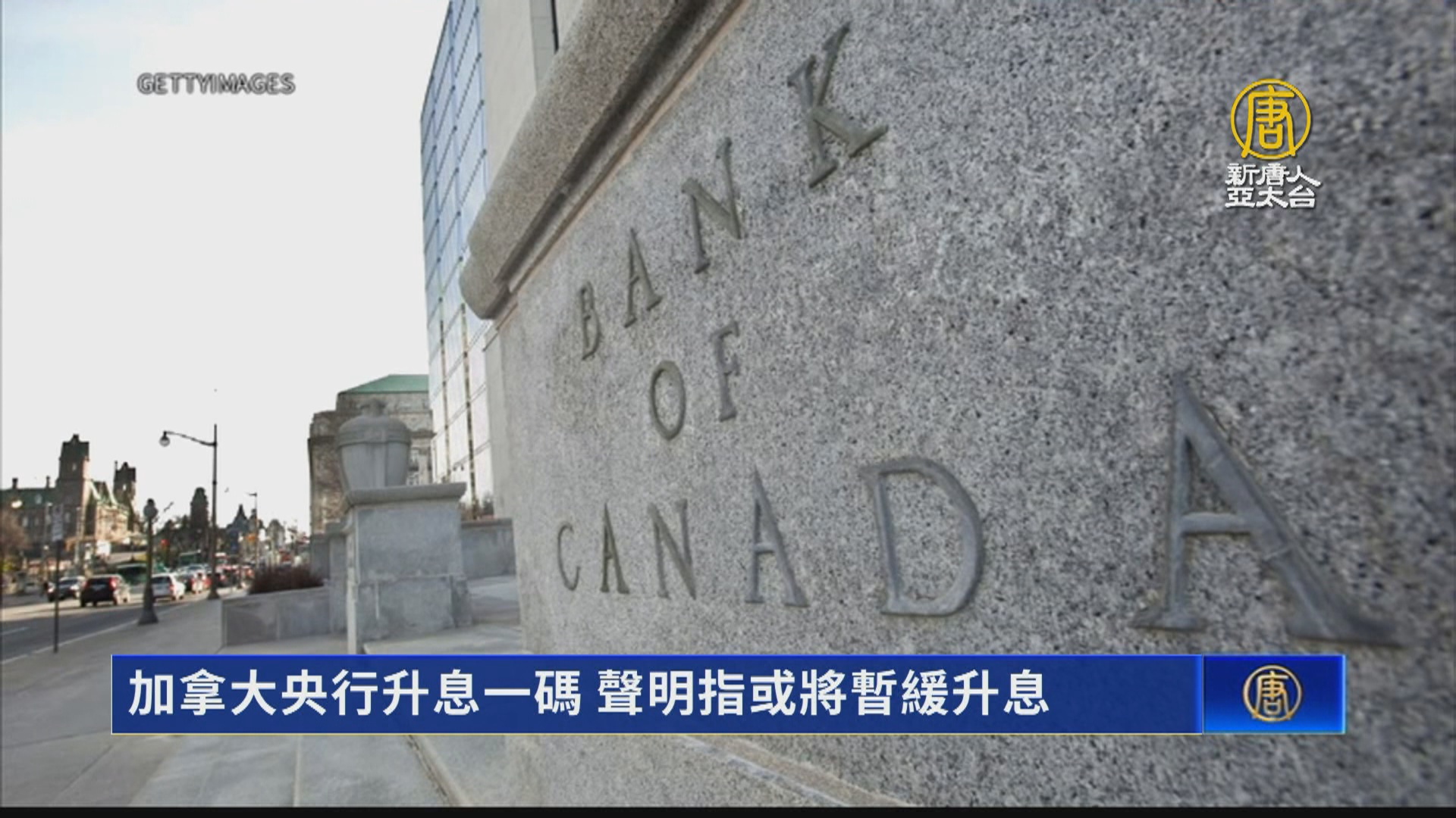 加拿大央行升息一碼 聲明指或將暫緩升息