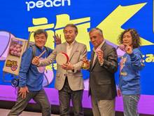 樂桃航空1日在台北舉行記者會,執行董事CEO森健明(圖左二)宣布3月28日將開航台北(桃園機場)-名古屋新航線;3日起台北-名古屋、高雄-大阪票價優惠7折起。(圖/新唐人亞太)