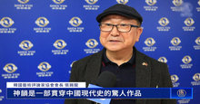 韓國藝術文化評論協會會長 崔賞潤:「印象最深的部分是神韻的動態背景天幕。雖然使用了現代數字藝術,但是神韻創造了真實生動的舞台藝術背景。這是非常了不起的,這讓我驚歎。」