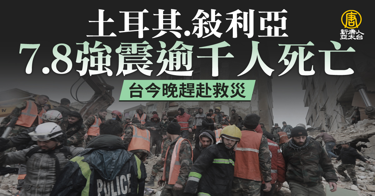 【新唐人亞太台 2023 年 02 月 06 日訊】好,土耳其在當地時間週一(6日)凌晨,發生芮氏規模7.8淺層強震,地震深度只有17.9公里,重創土耳其與鄰國敘利亞。傍晚左右,土耳其已知死亡912人、受傷5千多人,敘利亞死亡476人、142人受傷,死傷數字仍持續攀升。從現場畫面看到,到處瀰漫著濃密的白煙,時不時會聽到民眾們的哀號與尖叫。中華民國外交部表示,目前暫未接獲台僑或台灣旅客傷亡的通報,除了總統蔡英文宣布捐贈土耳其20萬美元,作為賑災及安置災民外,台灣消防署特搜隊,也接獲外交部通知,將在今天晚上九點出發前往土耳其協助救災。