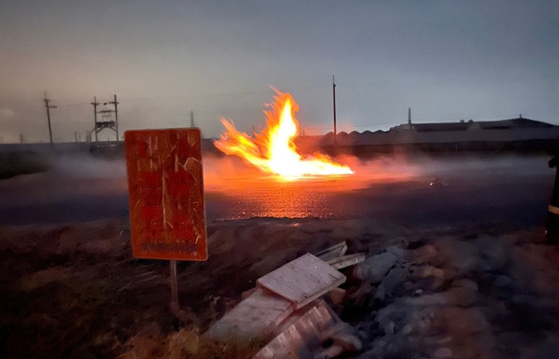 陳玉意說,昨晚趕到現場發現皇源聖殿前面有3處噴發孔,其中1處先出現火勢,接著3處噴發口全被引燃,噴出的泥漿高達2公尺,趕緊請台電到現場切斷電力。