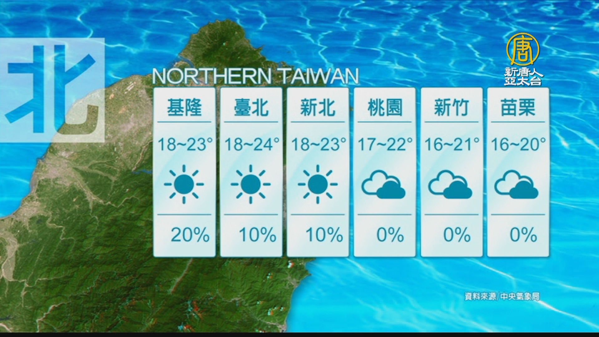 2023-02-08 09:10:59歡迎您收看2月8日的早安新唐人,我是唐潔安,先來帶您關心天氣。今天北東與東半部地區降雨機率較高,中南部則是可見到陽光的舒適天氣,但要留心日夜溫差大。明天週四,東半部會有更顯著的雨勢,而西半部則會有晴時多雲的天氣。帶您一起來看到國際媒體重要訊息。