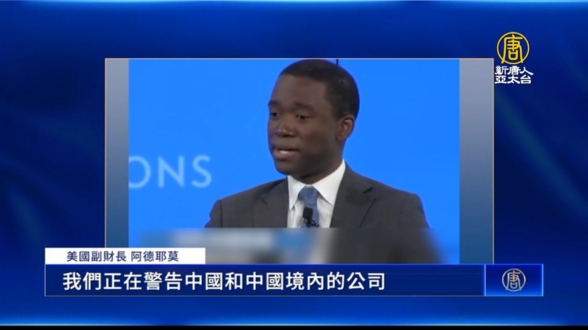 美國副財長 阿德耶莫:「我們正在警告中國和中國境內的公司,企圖利用中國(當局的政策)來逃避我們的金融制裁或出口管制的行為,不僅會受到我們國家的打擊,也會受到歐盟,以及他們非常重視的其它經濟體的打擊。」