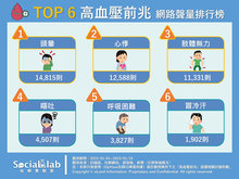 根據國民健康署統計,台灣每4名成年人中就有1名罹患高血壓,卻有高達7成的民眾不知自己罹患高血壓,由於在初期症狀並不明顯,高血壓又被稱為「隱形殺手」,但若以下這些前兆發生時,可就必須提高警戒了。《Social Lab社群實驗室》本次透過《OpView社群口碑資料庫》追蹤近1年內「高血壓前兆」話題的網路聲量表現,帶您了解有關網友熱議的6大高血壓前兆有哪些。