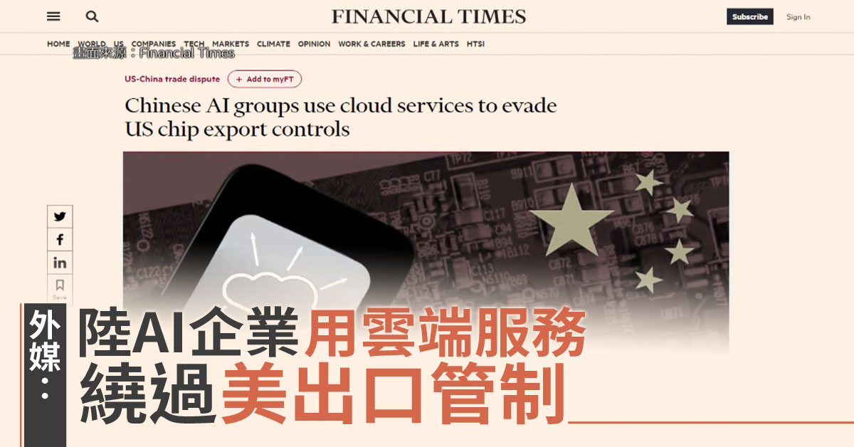 外媒:陸AI企業用雲端服務繞過美出口管制