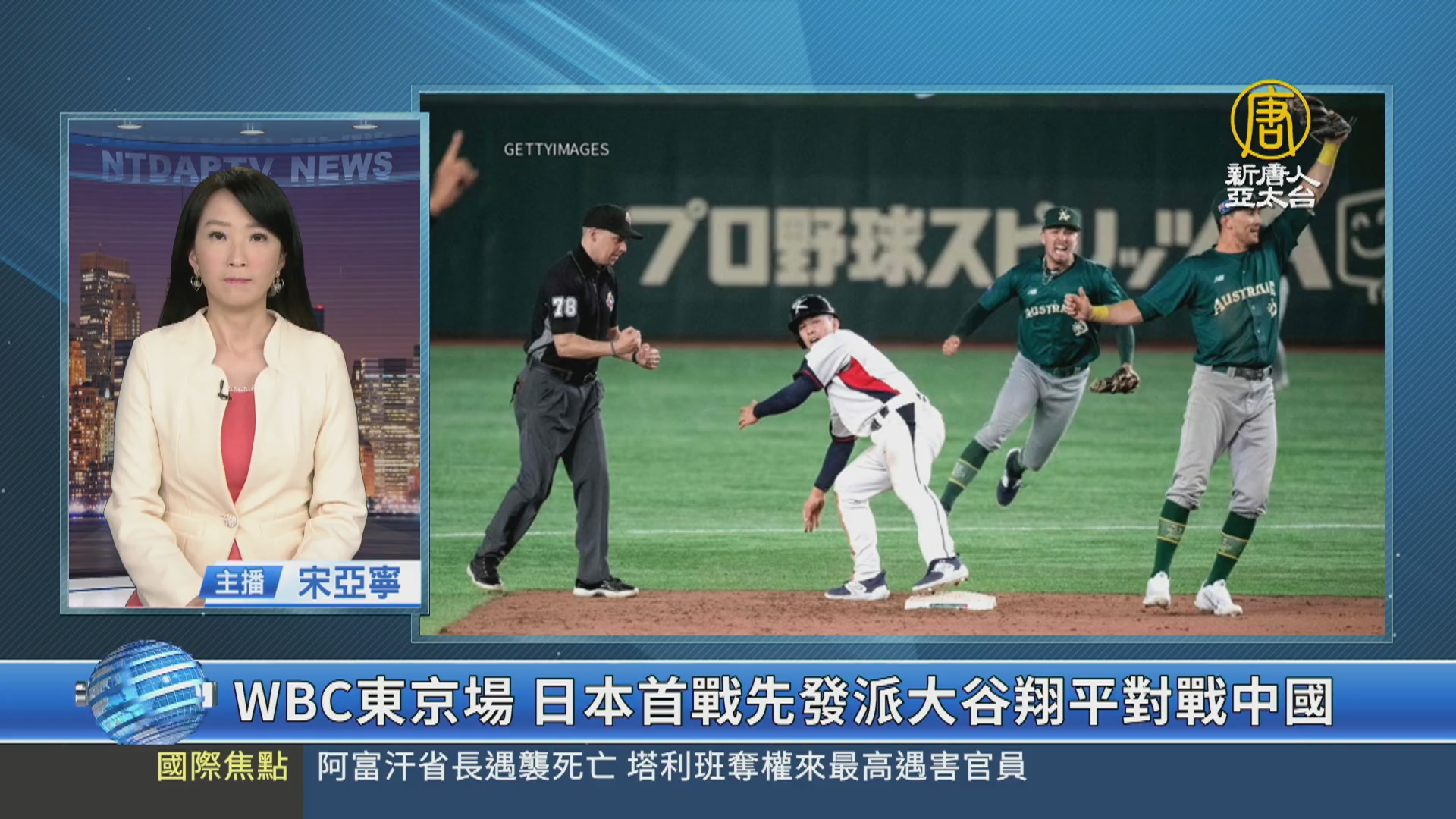 【新唐人亞太台 2023 年 03 月 09 日訊】好,繼續來關注WBC賽事,今天在日本B組預賽中,地主國日本,首戰將在東京巨蛋,對上中國隊。先發投手,由投打俱佳的大谷翔平擔任,盼能帶動士氣,發揮地主國優勢,拿下首勝。目前日本維持三分領先。至於分組賽第一場,由南韓對上澳洲,但南韓投手群無法抵擋澳洲長程砲,終場以7:8落敗,這也是南韓隊史首度在經典賽輸給澳洲。