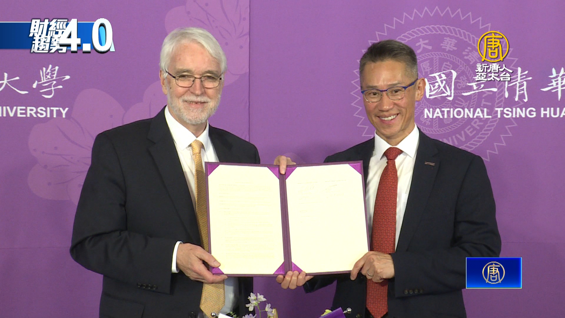兩位校長共同簽下合作備忘錄,台灣清華大學和美國頂尖公立大學伊利諾大學系統,將在半導體、生物醫學、電動車、華語教學等領域深化合作,展開研究交流和人才培育。