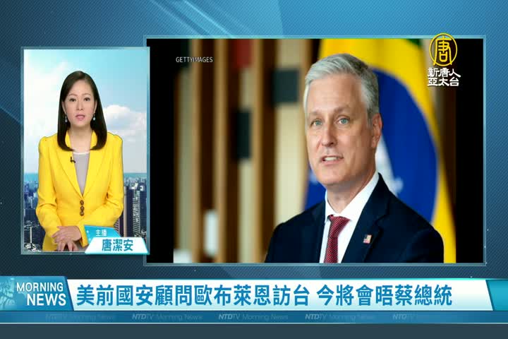 【新唐人亞太台 2023 年 03 月 21 日訊】早安新唐人先來看到。前白宮國家安全顧問歐布萊恩昨天已率團抵達台灣,歐布萊恩以全球台灣研究中心(GTI)「美台關係工作小組」主席身份來台,蔡英文總統今天下午將在總統府接見,並頒授「特種大綬景星勳章」,歐布萊恩預計在台灣停留5天,據媒體報導,他也將拜會國防部、陸委會和經濟部,離台前將召開記者會。歐布萊恩日前才鄭重澄清,如果中共攻打台灣,美國會摧毀台積電,是中共的假訊息,想入侵台灣的只有中共。