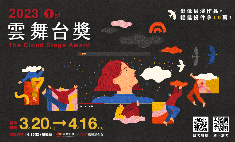 為了因應後疫情時代消費新習慣,有越來越多的藝文團體投入線上展演,期盼結合雲端力量,讓數位化、線上化的作品,吸納更多觀眾,進而提升劇場能量。廣藝基金會長期推動國內表演藝術,為此趨勢特別發揮業界火車頭動能,宣布推出第一屆「雲舞台獎」,祭出最高獎金10萬元,徵件計畫從3月20日起至4月16日截止,鼓勵各方好手踴躍參賽,讓優秀的線上作品被更多人看見,一同創造網路新時代!
