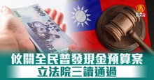 2025-11-06 13:16:33台灣全民普發現金一萬元,登記入帳作業週三(5日)上路,以身分證統一編號,或居留證統一證號尾數分流,最快下週三(12日)就會入帳。