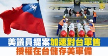 美議員提案加速對台軍售 授權在台儲存美軍備