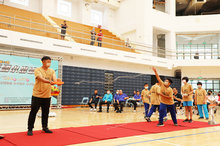 嘉義縣溪口陀螺隊精彩的表演,為賽事揭開序幕,縣長翁章梁頒獎給勞苦功高、熱情推展國小排球運動的優秀教練們。翁縣長也推薦選手們,在比賽期間,可以到處看看嘉義的人文風光,感受嘉義人的好客與熱情。