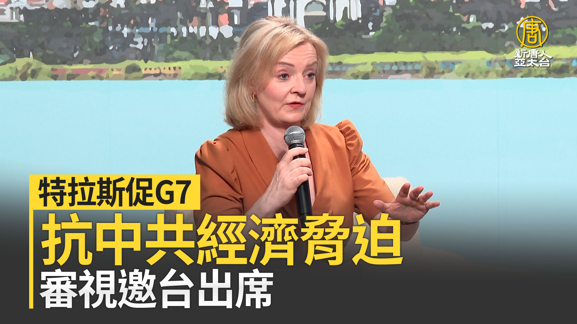 【新唐人亞太台 2023 年 05 月 17 日訊】G7領袖峰會19日將在廣島召開,在台灣訪問的英國前首相特拉斯,在座談會上被問到,若她還擔任首相,將如何就台海表態?特拉斯說,G7最急迫的事,就是協商成立經濟北約,以聯盟對抗中共的經濟脅迫。