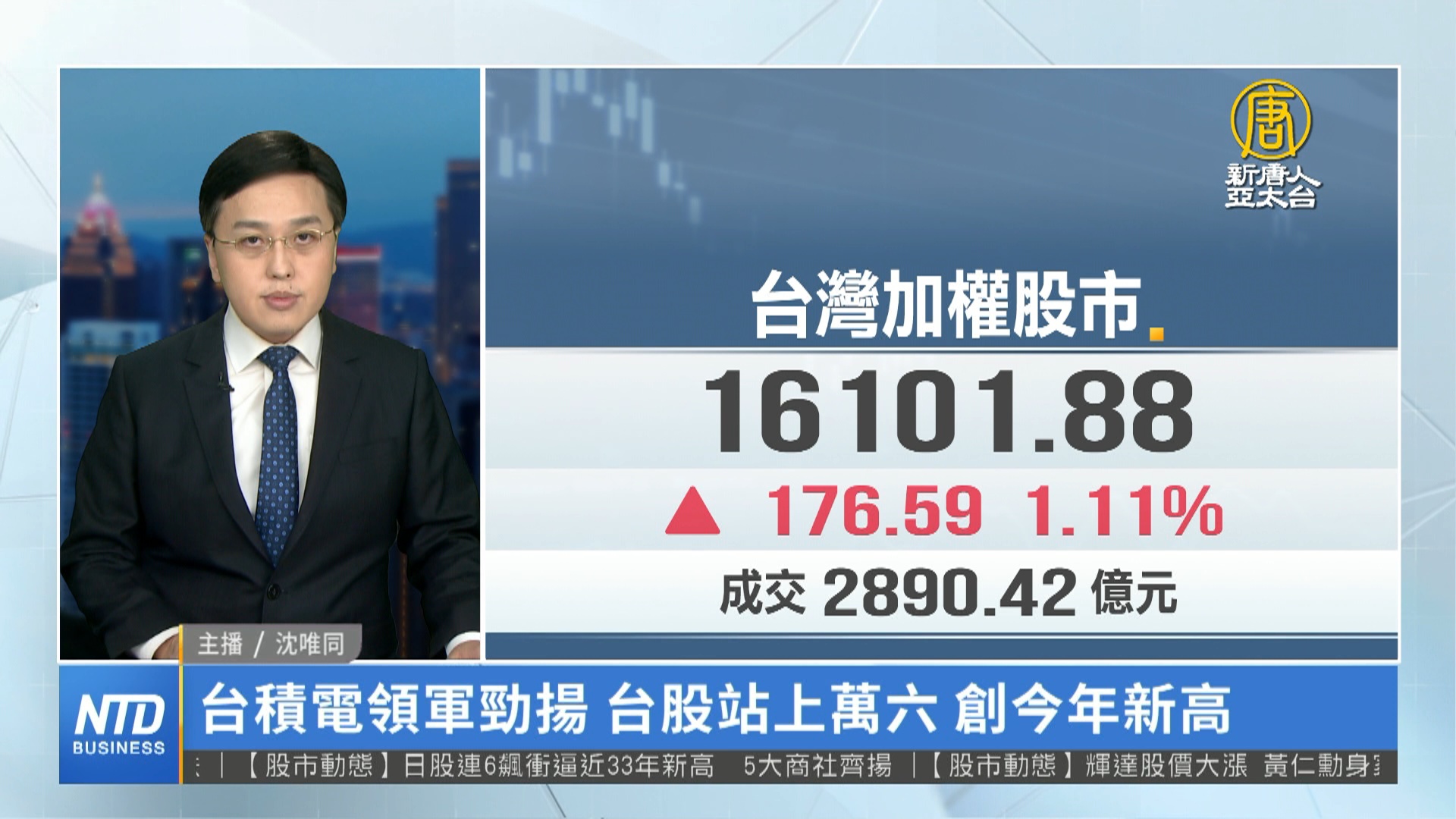 2024-07-05 07:48:56早安新唐人先來看到,台股再度衝高,台積電股價正式登上千元行列,換算五年下來,漲幅超過300%,投顧業者認為,在產業趨勢帶動下,台股下半年依舊強勢。