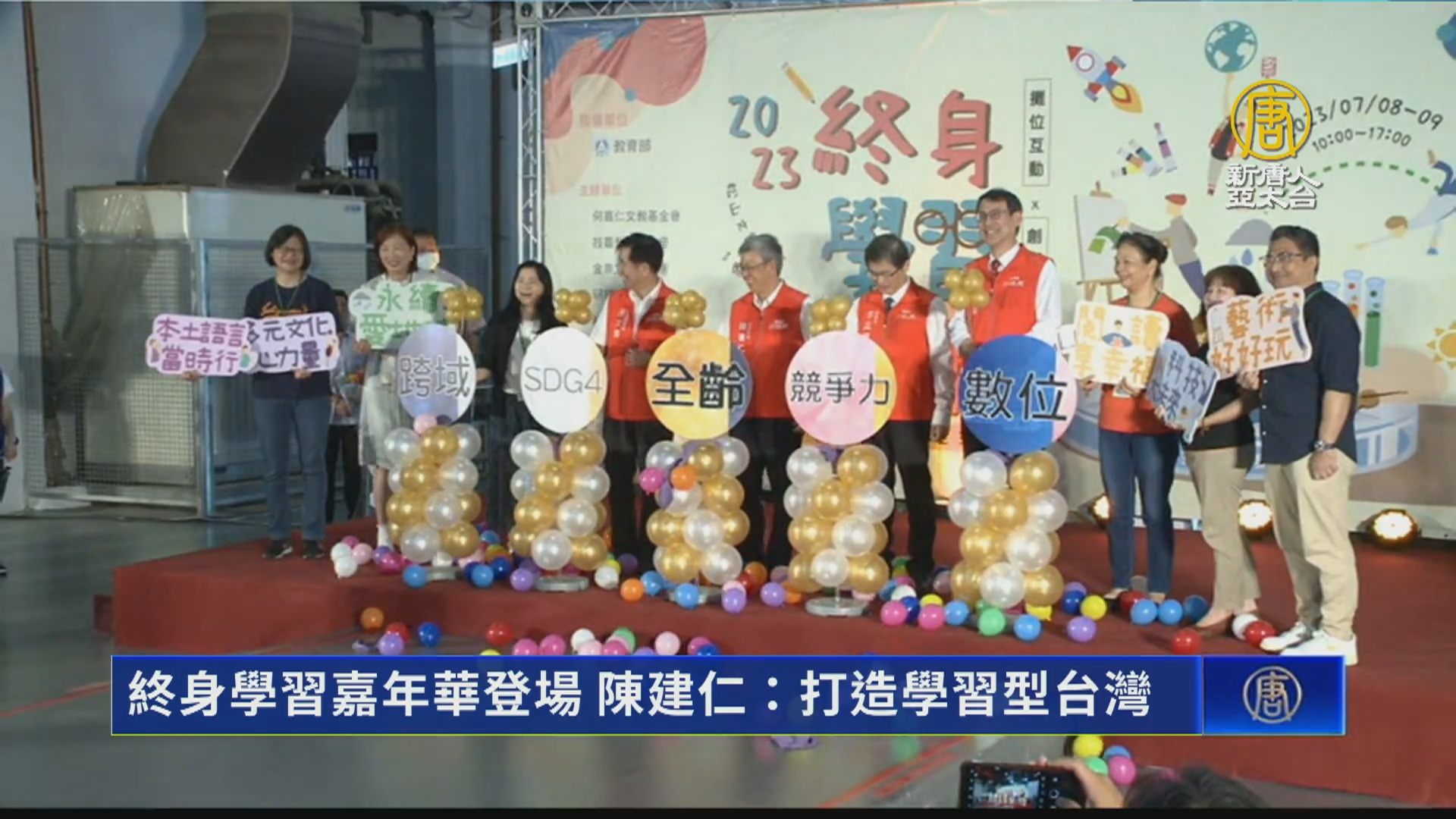 【新唐人亞太台 2023 年 07 月 08 日訊】教育部與六大基金會共同舉辦終身學習嘉年華,週六(8日)在台北登場,行政院長陳建仁出席活動時表示,台灣的六大學習圈在700多個教育基金會努力下,都做得很好。未來政府要打造學習型台灣,目標成為終身快樂學習的幸福社會。