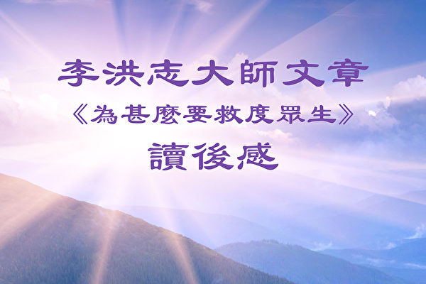 2023-07-16 16:19:32很多讀者在拜讀了法輪功創始人李洪志大師的文章《為甚麼要救度眾生》後,心靈受到震動。有人說,李大師的文章「回答了每個人心中的基本問題」;「涉及到了所有宗教的基本信條」;在最高的神之下,全人類「作為兄弟姐妹都是相連的」。