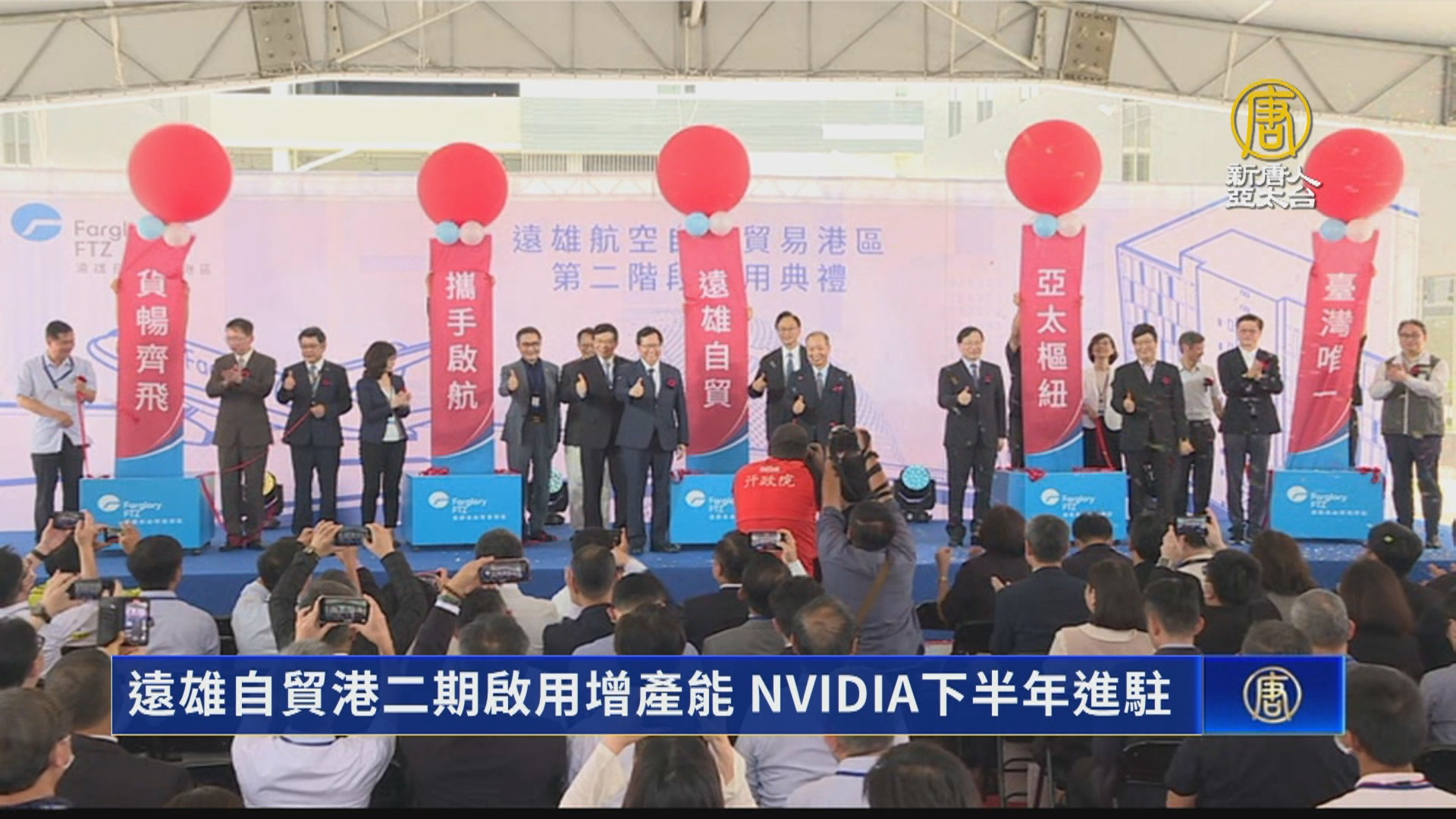 【新唐人亞太台 2023 年 07 月 12 日訊】遠雄自貿港加值園區今天(12日)舉辦二期啟用典禮,年進出口貿易額,預計再增加新台幣1.5兆元。遠雄自貿港董事長葉鈞耀透露,晶片繪圖大廠輝達進駐意願積極,幾乎談好九成,最快下半年就會進駐。