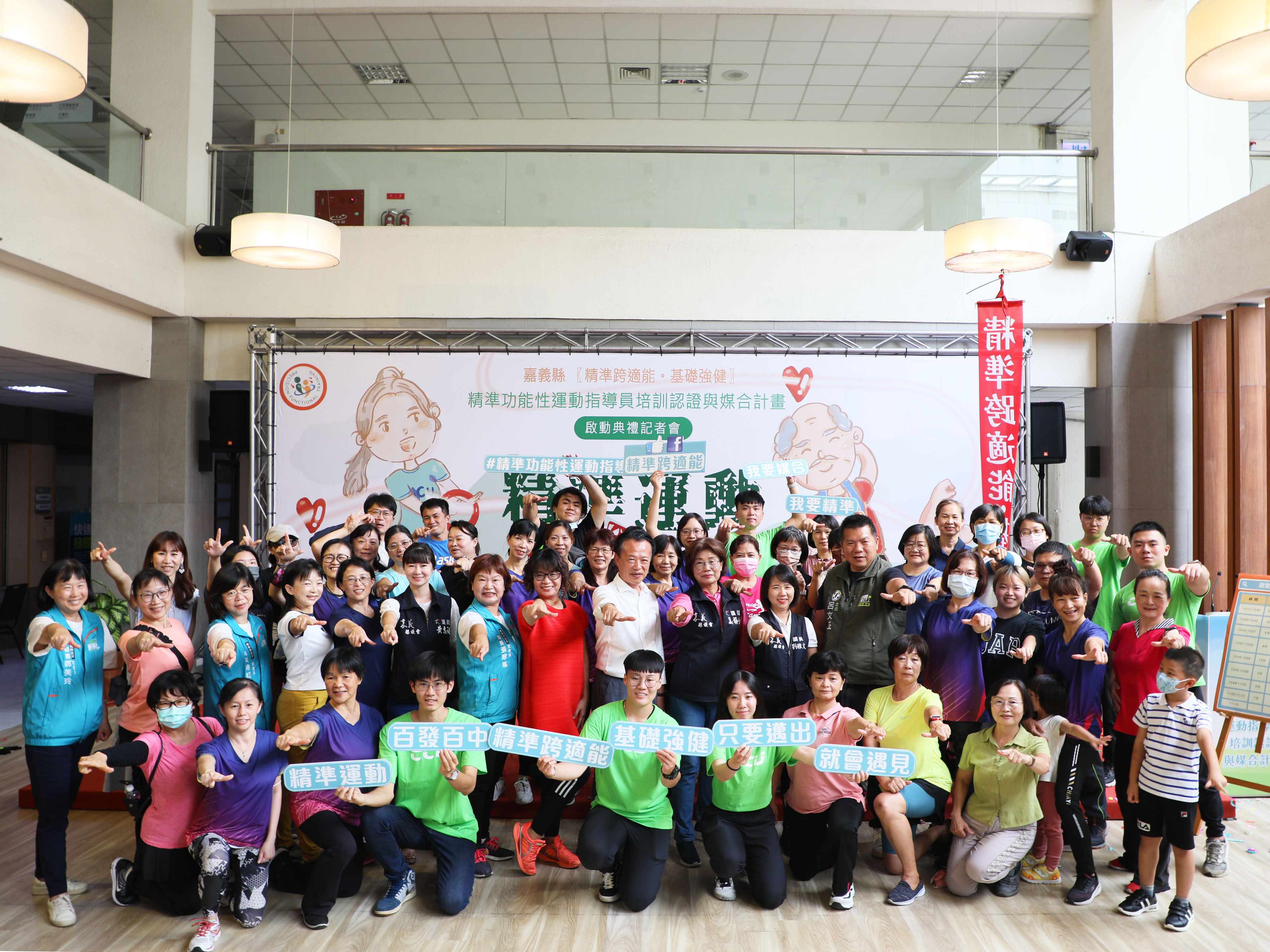縣府善用高等教育人力資源,有效運用大學中運動相關係所學子,結合中正大學、嘉義大學、南華大學等師資共同推動「嘉義縣精準功能性運動指導員培訓認證與媒合計畫」,及研發個別化精準運動模組,現已完成兩期培訓。