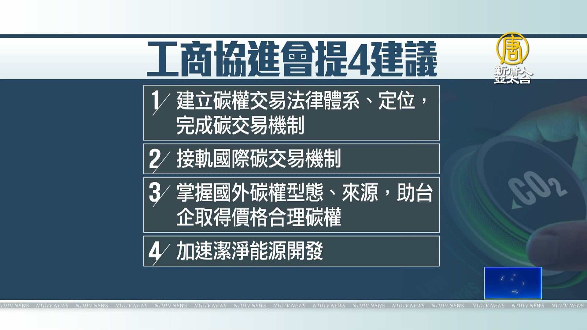 【新唐人亞太台 2023 年 08 月 07 日訊】再來看到,工商協進會對台灣碳權交易所提出4點建議,包含儘速建立碳權交易的法律體系與定位,逐步完成碳交易機制;以及接軌國際碳交易機制;掌握國外碳權型態與來源,協助台灣企業取得價格合理碳權;並加速潔淨能源開發。