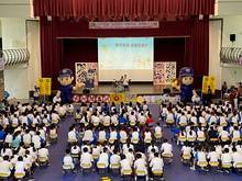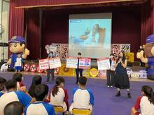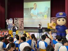 市警局報嘉音最佳主持人K倫及鈺伶,也來到現場與學生互動,帶動現場熱鬧活潑氣氛,並透過觀看影片有獎徵答,學生在歡樂開心的氛圍中,輕鬆汲取婦幼安全知識,提升婦幼人身安全觀念。