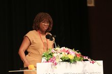 國際聯合新生訓練由國合會副祕書長李志宏、聖文森及格瑞那丁大使H.E Andrea Bowman、中山大學副校長郭志文致詞揭開序幕(中山大學 提供)