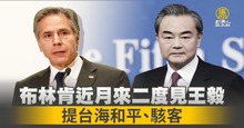 布林肯近月來二度見王毅 提台海和平、駭客