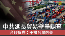 2023-10-10 07:05:21中共今年4月突然對台灣啟動所謂「貿易壁壘調查」,昨天,中共當局稱要延長調查期到明年總統大選的前一天。對此,行政院聲明指出,中共企圖以經濟脅迫干擾我方選舉,而且違反世界貿易組織規範。