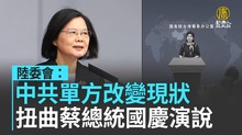 陸委會:中共單方改變現狀 扭曲蔡總統國慶演說