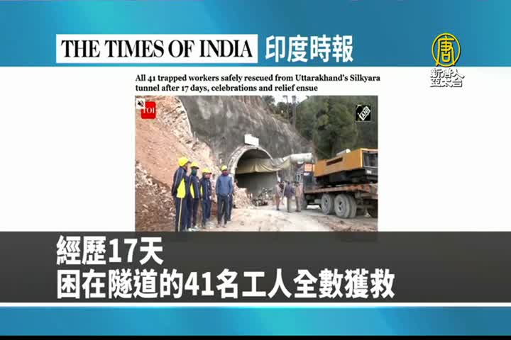 【新唐人亞太台 2023 年 11 月 29 日訊】最後是印度時報報導:經歷17天,困在隧道的41名工人全數獲救。